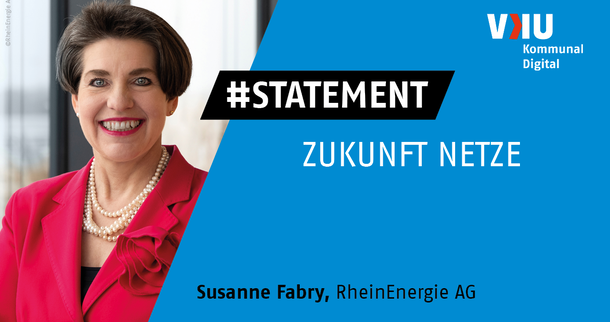 Im Statement spricht Susanne Fabry, Mitglied des Vorstandes der RheinEnergie AG, über die Zukunft der Netze im Hinblick auf erneuerbare Energien und die Dezentralisierung der Energieerzeugung. Das Interview wurde auf der VKU-Verbandstagung 2023 aufgezeichnet.