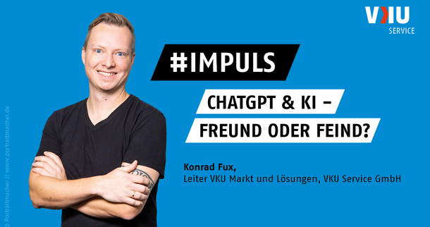 Heute werfen wir einen Blick auf die Perspektive von Konrad Fux, Leiter VKU Markt und Lösungen der VKU Service GmbH. Als Experte im Bereich der Kommunikation und des Marketings in der digitalen Transformation sowie als leidenschaftlicher Autor und Blogger wird uns Konrad Fux seine Sichtweise zum Thema ChatGPT und KI präsentieren.