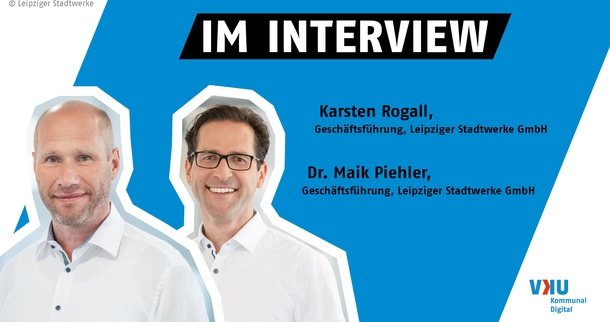 Karsten Rogall und Dr. Maik Piehler, Geschäftsführung der Stadtwerke Leipzig GmbH im Backstage-Interview: "Wie ist die aktuelle Lage?". Das Interview haben wir vor Ort auf dem diesjährigen VKU-Stadtwerkekongress 2022 aufgezeichnet.