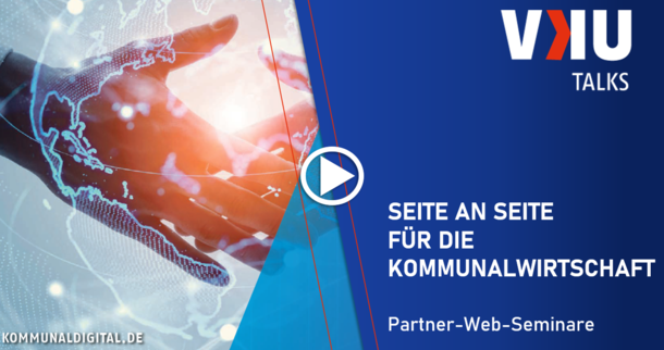 Ein guter Partner ist die beste Voraussetzung für gemeinsames Gelingen! Mit KommunalDigital können Sie in authentischem Setting Ihr Online Seminar anbieten: Erstellen Sie Ihr eigenes Partner-Web-Seminar, präsentieren Sie Ihre Inhalte exklusiv Entscheiderinnen und Entscheidern der Kommunalwirtschaft und bringen Sie sich mit Ihren Inhalten aktiv im VKU-Kosmos ein.