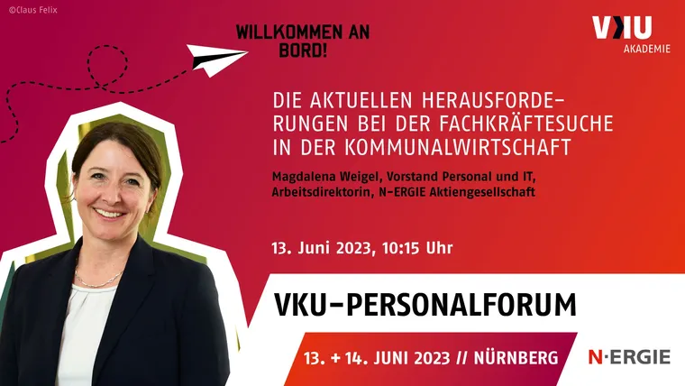 Das VKU-Personalforum 2023 ist zu Gast bei der N-ERGIE Aktiengesellschaft in Nürnberg. Unter anderem dürfen Sie sich auf einen Impuls von Magdalena Weigel, Vorstand Personal und IT, Arbeitsdirektorin, N-ERGIE Aktiengesellschaft zu den aktuellen Herausforderungen bei der Fachkräftesuche in der Kommunalwirtschaft freuen.