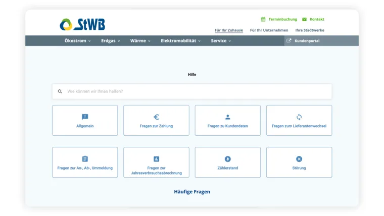 Auch für Mitarbeiter*innen ist dieses System hilfreich, denn sie können die smarten Tools für sich nutzen. Haben Kund*innen Fragen, bei denen sich die Mitarbeiter*innen selbst nicht sicher sind? Die intelligente Hilfeseite kann helfen. Sie ähnelt einem FAQ und sorgt mit übersichtlichem Design und verschiedenen Kategorien dafür, dass sowohl Mitarbeiter*innen als auch Verbraucher: innen sofort zum richtigen Eintrag gelangen. Außerdem haben sie die Möglichkeit, per Suchleiste mit Autovervollständigung nach ihrem Anliegen zu suchen. Im Idealfall erhalten sie innerhalb weniger Sekunden ihre Antwort.