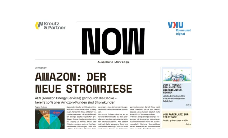 „Ich denke viel an die Zukunft, weil das der Ort ist, wo ich den Rest meines Lebens zubringen werde“, meinte Woody Allen einmal. Und so ist es natürlich auch im professionellen Kontext: Gut beraten ist, wer versucht, die Zukunft strategisch fundiert zu antizipieren. Zu diesem Zweck haben sich mit der Beratungsmanufaktur Kreutz & Partner, KommunalDigital und dem VKU Verlag drei Akteure zusammengetan, um ein Schlaglicht auf die (mögliche) Kommunalwirtschaft 2035 zu werfen. Die verdichteten Ergebnisse finden sich nun in „NOW“: „NOW“ zeigt eine seriöse, validierte Perspektive auf die Zukunft der kommunalen Energiewirtschaft. Die Artikel basieren dabei auf fundierten Zukunftsprojektionen, Szenarien und Narrativen, die sowohl auf wissenschaftlicher Expertise, sowie auf branchenspezifischem Wissen beruhen.